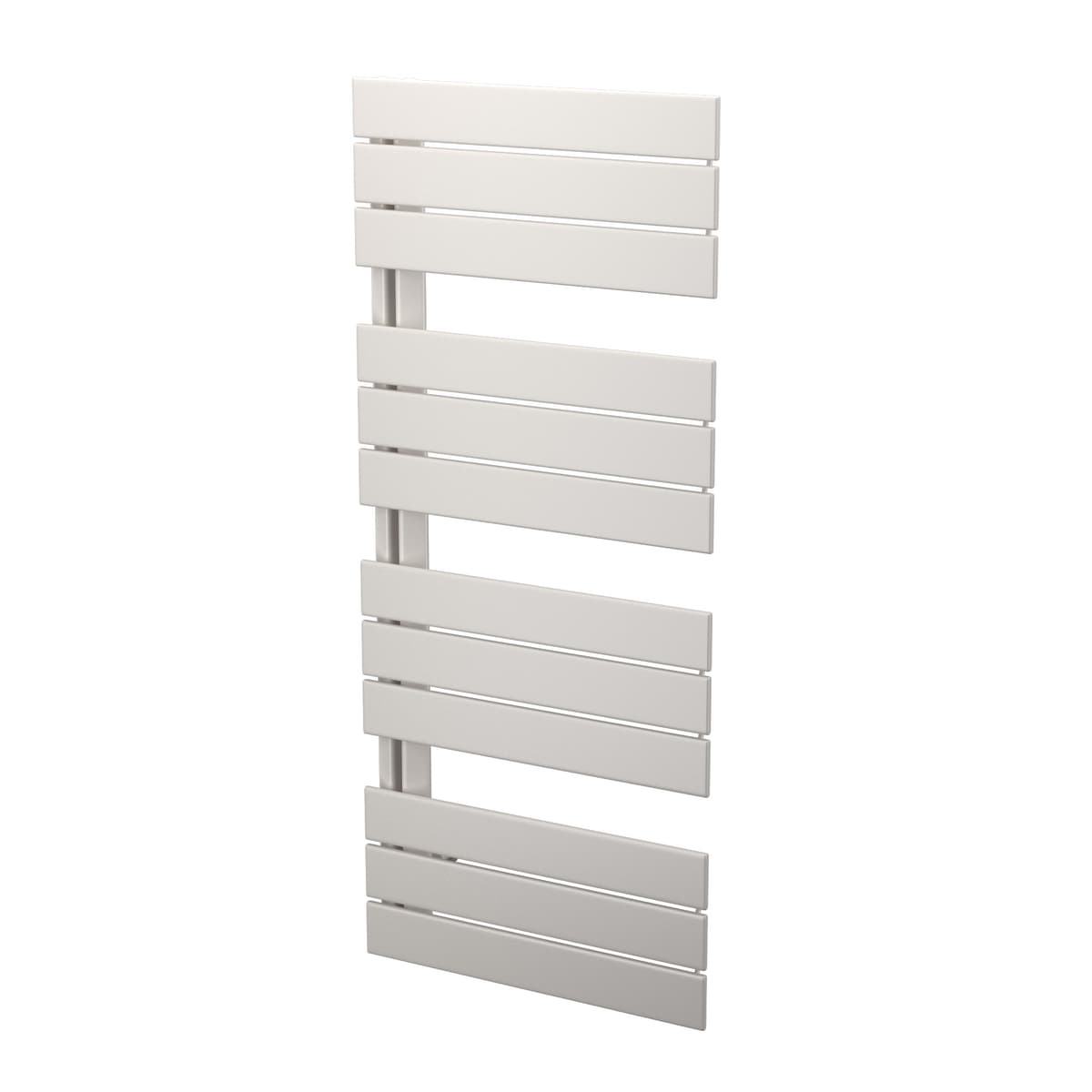 Sèche-serviettes alliant un design élégant à des caractéristiques fonctionnelles. La particularité de cette solution est que ses tubes cintrés pivotants peuvent s’ouvrir pour faciliter la pose des serviettes et autres accessoires de salle de bains.