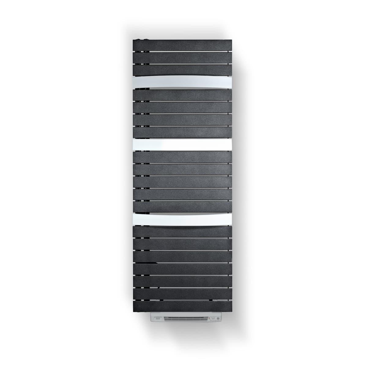 Sèche-serviettes alliant un design élégant à des caractéristiques fonctionnelles. La particularité de cette solution est que ses tubes cintrés pivotants peuvent s’ouvrir pour faciliter la pose des serviettes et autres accessoires de salle de bains.